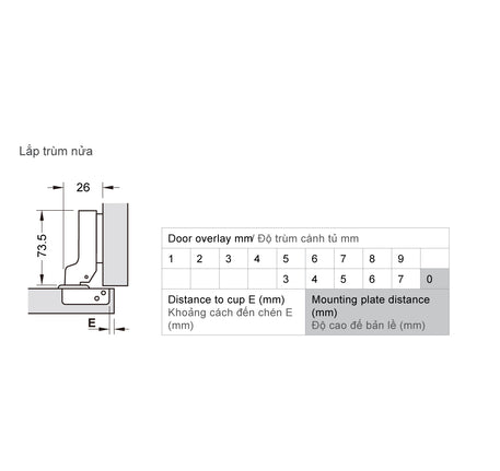 Bản lề Hafele METALLA SM 110 độ, giảm chấn, Inox 304, trọn bộ DIY