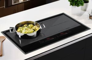 - Công suất mạnh mẽ với Booster 3000W: Mỗi vùng nấu có thể đạt tới 3000W khi kích hoạt chức năng Booster, giúp đun sôi nước hoặc làm nóng thức ăn cực nhanh, tiết kiệm đáng kể thời gian nấu nướng.