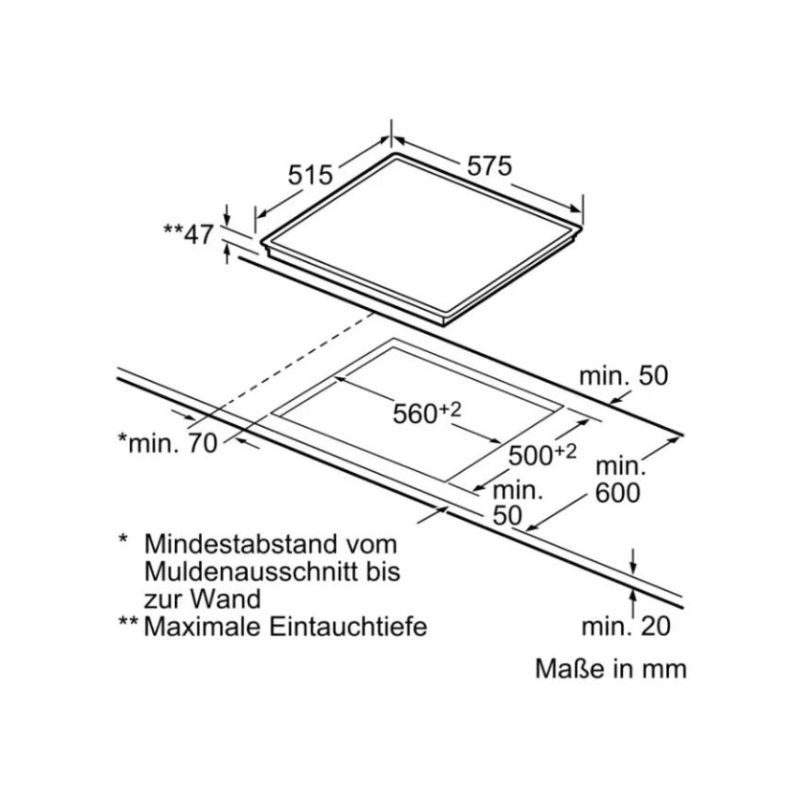 - Kích thước lắp đặt : 51mm x 575mm x 515mm
