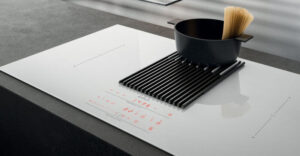 - Thiết kế nổi bật với tấm kính nâng hạ và màu trắng tinh tế: Điểm đặc trưng của Libra là tấm kính trung tâm màu trắng sẽ tự động nâng lên khi bật hút mùi, tạo hiệu ứng thị giác ấn tượng và thu hút hơi và mùi hiệu quả hơn. Khi tắt, tấm kính hạ xuống, bề mặt bếp trở nên hoàn toàn phẳng và gọn gàng, phù hợp với không gian bếp tông màu sáng.