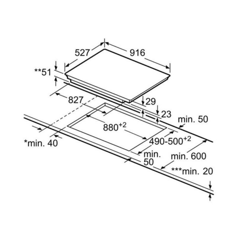 - Kích thước sản phẩm (C x R xS): 57.0 x 916 x 527 mm