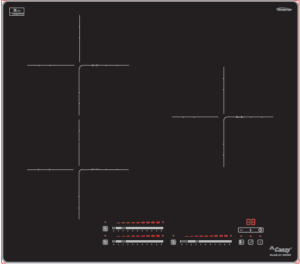 - Thiết kế 3 vùng nấu vuông: Bố trí 3 vùng nấu (2 vùng bên trái và 1 vùng bên phải) với kích thước mặt kính 600 x 530 mm, tận dụng tối đa không gian nấu nướng, phù hợp cho gia đình có nhu cầu nấu nhiều.