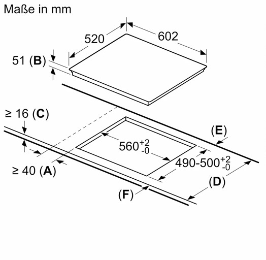 - Kích thước lắp đặt (RxS): 560 x 490-500 mm