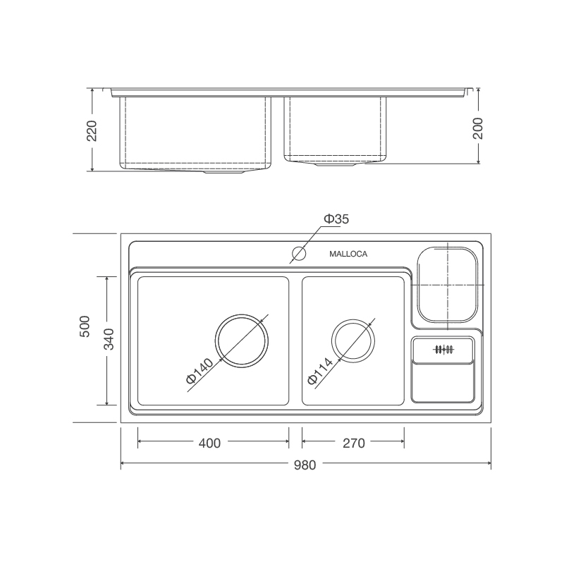 THÔNG SỐ KĨ THUẬT CỦA CHẬU RỬA CHÉN MALLOCA MS 8804N