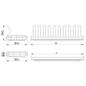 - Kích thước sản phẩm (R x S x C): 764mm x 261mm x 65mm (chiều cao không bao gồm chân bắt và có thể thay đổi tùy theo cách lắp đặt)