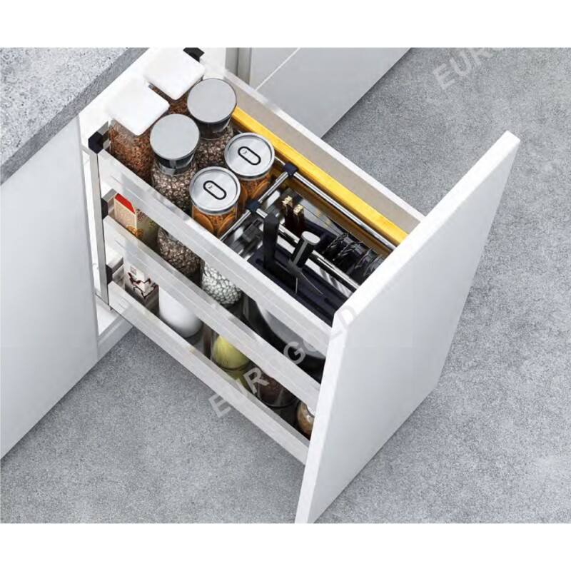 - Dễ dàng lắp đặt và sử dụng: Thiết kế tối ưu giúp việc lắp đặt vào khoang tủ bếp trở nên thuận tiện. Việc sắp xếp và lấy đồ dùng cũng rất dễ dàng.