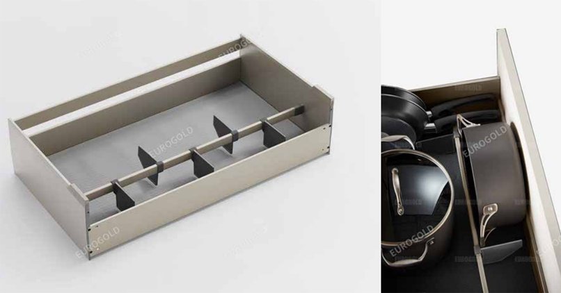 - Các vách ngăn có thể điều chỉnh là một tính năng quan trọng giúp bạn sắp xếp xoong nồi với nhiều kích cỡ khác nhau một cách hiệu quả.