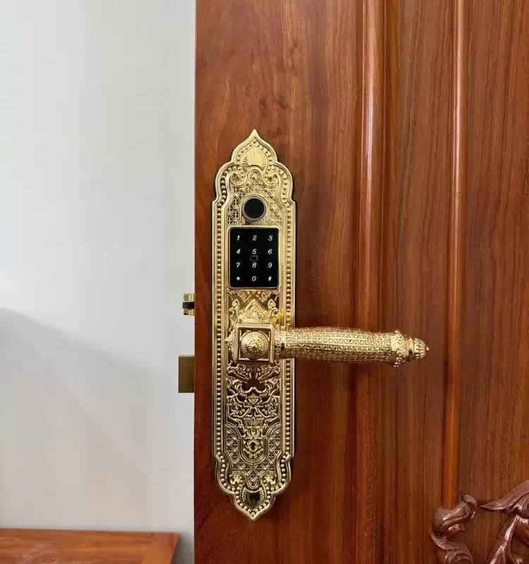 HÌNH ẢNH THỰC TẾ CỦA KHOÁ CỬA GỖ TÂN CỔ ĐIỂN KASSLER KL 919 PRO GOLD APP