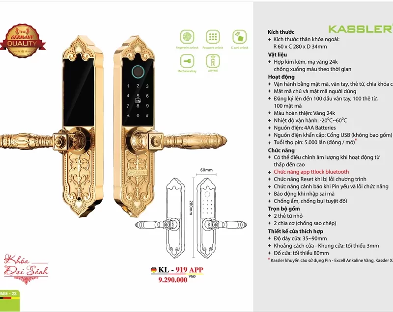 KHOÁ CỬA GỖ VÂN TAY KASSLER KL 919 APP