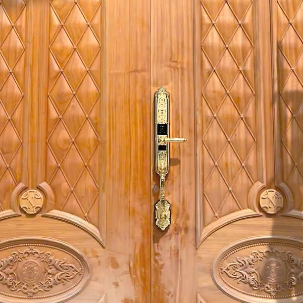 - Kiểu Dáng Hiện Đại và Tinh Tế: Thiết kế thanh lịch, đường nét mềm mại, kết hợp hài hòa giữa yếu tố cổ điển và hiện đại, làm tăng thêm vẻ sang trọng cho cửa gỗ.