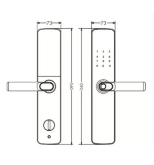 Kích thước thân khóa ngoài: 73mm x 380mm x 26mm