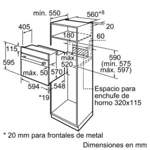 - Kích thước lò (chiều cao, chiều rộng, chiều sâu) 595 x 594 x 548 mmn
