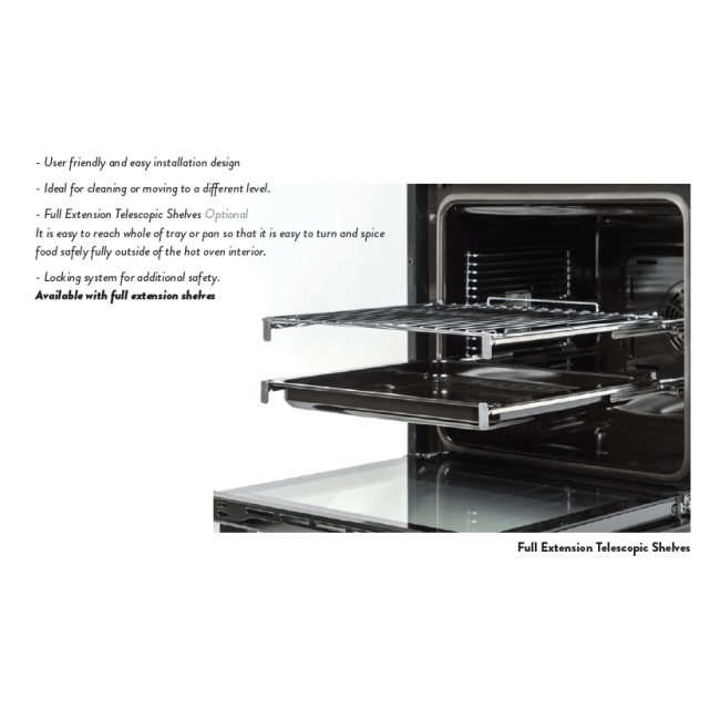 - Khay trượt tiện sử dụng giúp bạn dễ dàng đưa thực phẩm vào và lấy ra khỏi lò mà không cần chạm tay vào khoang nóng.