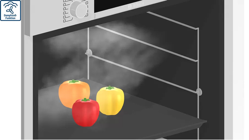 Added Steam: Bổ sung hơi nước 3 cấp độ, giúp món nướng giòn ngoài, mềm trong (ví dụ: bánh mì, thịt nướng).