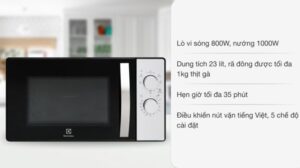 - Vi sóng (800W): Đảm bảo khả năng hâm nóng thức ăn thừa, rã đông thực phẩm đông lạnh và nấu chín một số món ăn đơn giản.
