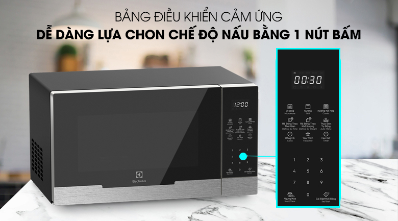- Thiết kế hiện đại và mạnh mẽ: Với tông màu đen chủ đạo và các đường nét tinh tế, lò vi sóng Electrolux EMG23DI9EBP mang đến vẻ sang trọng và hiện đại cho không gian bếp của bạn.