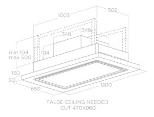 - Kiểu dáng: Máy hút mùi âm trần , thiết kế dạng đèn chùm hoặc panel trang trí tích hợp hút mùi, lắp đặt ẩn hoàn toàn vào trần nhà.
