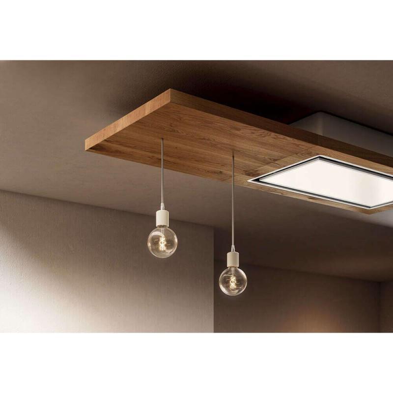 - Kiểu dáng: Máy hút mùi âm trần (Ceiling Hood), thiết kế dạng đèn chùm hoặc panel trang trí tích hợp hút mùi, lắp đặt ẩn hoàn toàn vào trần nhà.