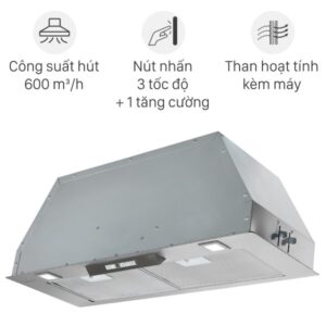 - Với công suất hút lên đến 630 m³/h, máy có khả năng loại bỏ hiệu quả khói, mùi thức ăn và dầu mỡ trong quá trình nấu nướng.