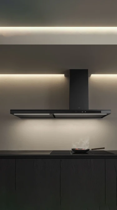 - Hút chu vi (Perimeter Aspiration) thông minh: Hệ thống hút khí được thiết kế ẩn tinh tế ở các cạnh, không chỉ tăng cường hiệu quả hút mùi mà còn giúp bề mặt máy luôn liền mạch và đẹp mắt, che giấu hoàn toàn các lưới lọc.