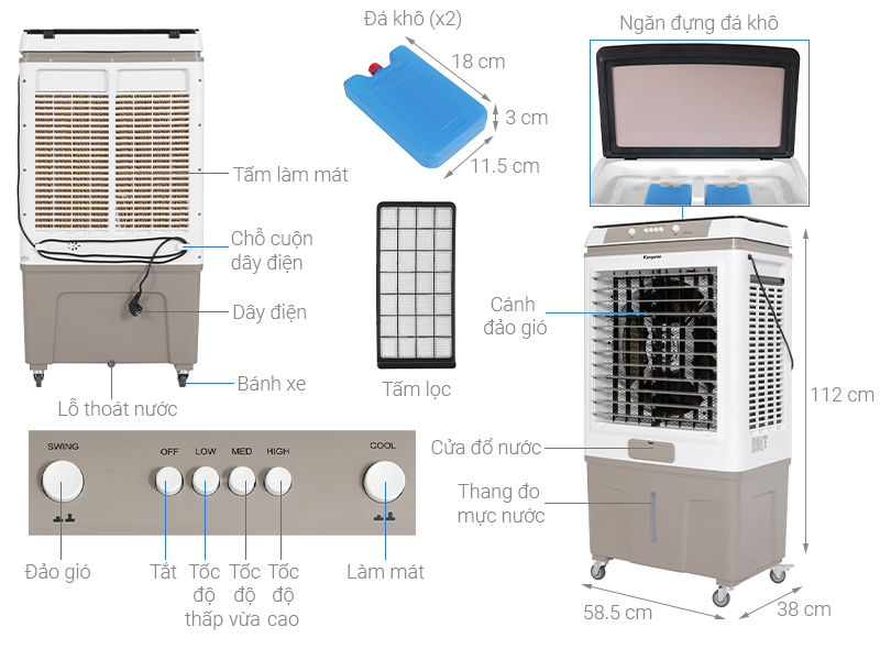 THÔNG SỐ KỸ THUẬT CỦA MÁY LÀM MÁT KHÔNG KHÍ KANGAROO KG50F99