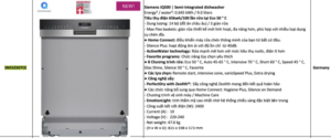 THÔNG SỐ KĨ THUẬT CỦA MÁY RỬA CHÉN ÂM BÁN PHẦN SIEMENS SN55ZS07CE IQ500 60CM