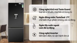 TỦ LẠNH ELECTROLUX NGĂN ĐÁ DƯỚI EBB3762K-H INVERTER ULTIMATETASTE 300 335L MÀU ĐEN BÓNG ( CÓ NGĂN ĐÔNG MỀM)