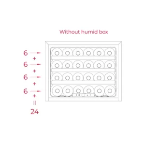 - Sức chứa tối đa: 24 chai rượu tiêu chuẩn (loại Bordeaux 0.75L)