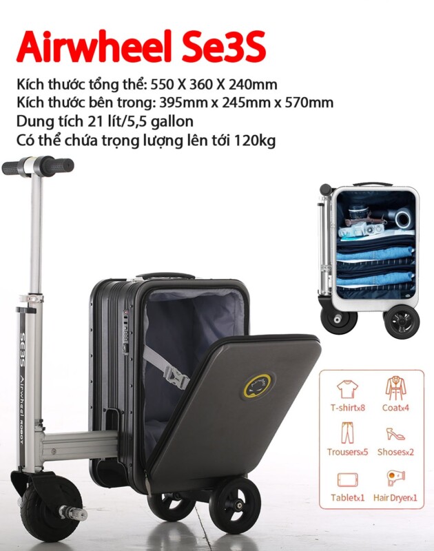 - Vali điện Airwheel SE3S là một sản phẩm đáng đầu tư cho những người thường xuyên di chuyển và đề cao sự tiện lợi.